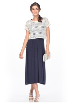 Promo Diskon MOOIMOM 2 Piece Maternity \u0026 Nursing Dress With Lace Top Baju Hamil Menyusui - Navy sayang jika tidak diamankan