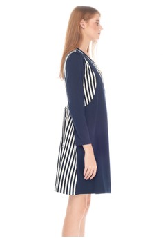 Foto - Foto Baju MOOIMOM Straight Stripe Long Sleeves Nursing Sling Dress Couple Set Baju Hamil Menyusui Couple Ibu Anak - Navy Girl