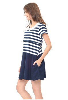 Seller baju anak MOOIMOM Round Neck Nursing Dress Couple Set Baju Hamil Menyusui Couple Ibu Anak - Navy Girl