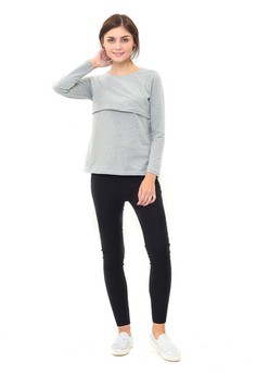 PENAWARAN MOOIMOM Basic Long Sleeve Nursing Top Baju Hamil Menyusui - Grey