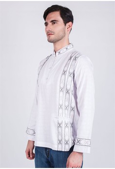 BELI LGS - Regular Fit - Baju koko - Lengan Panjang - Bordir Samping - Putih
