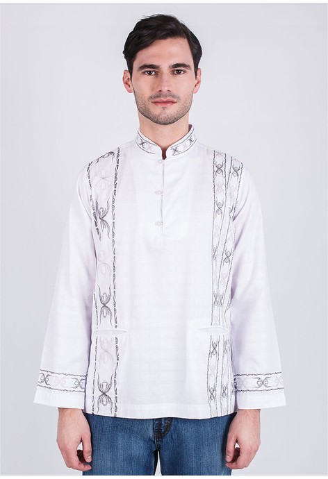 Foto - Foto Baju LGS - Regular Fit - Baju koko - Lengan Panjang - Bordir Samping - Putih