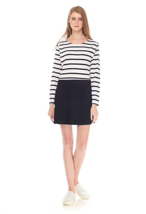 Koleksi Foto Produk MOOIMOM One Piece Stripe with Black Long Sleeves Dress Couple Set Baju Hamil Menyusui Couple Ibu Anak - White Black
