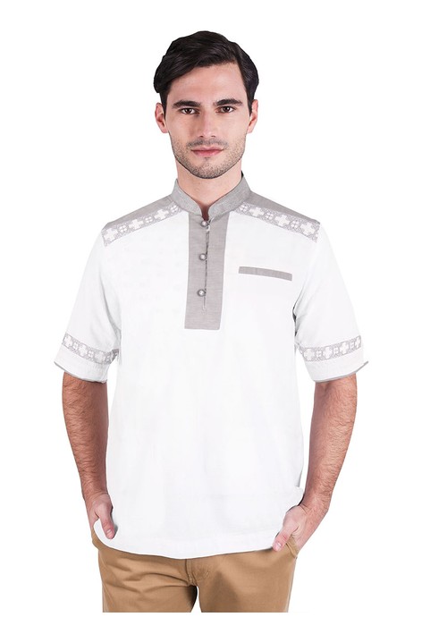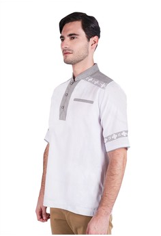 Foto - Foto Produk LGS - Slim Fit - Baju Koko - Lengan Pendek - Motif Simpel - Putih