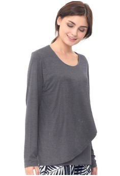 Penawaran DiskonMOOIMOM Nursing Wrap Front Long Sleeve Jersey Top Baju - Grey sayang jika tidak diambil