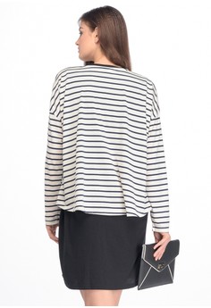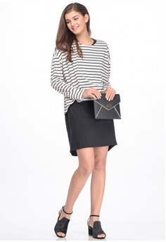 Gallery Baju MOOIMOM 2 Piece Maternity \u0026 Nursing Dress In Striped With Long Sleeves Baju Ibu Hamil Menyusui - Black White