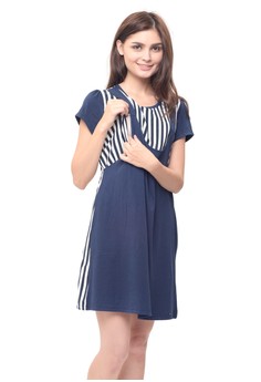BELI MOOIMOM Straight Stripe Nursing Sling Dress Couple Set Baju Hamil Menyusui Couple Ibu Anak - Navy Boy