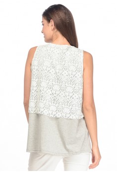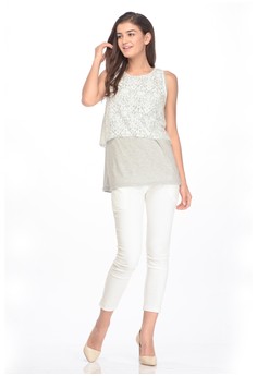 Koleksi Foto Produk MOOIMOM Maternity \u0026 Nursing Lace Top With Double Layer Baju Ibu Hamil Menyusui - Grey
