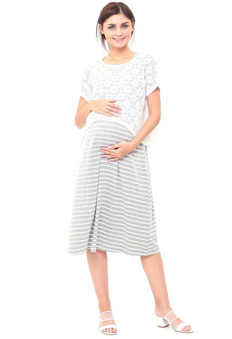 Produk Yang direkomendasikan terkait MOOIMOM 2 Piece Maternity Nursing Lace Top Long Dress Baju Hamil Menyusui - Grey
