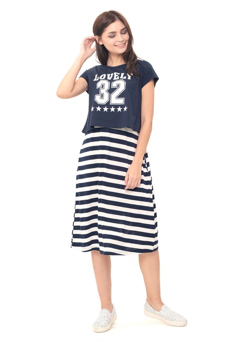 Gallery Produk MOOIMOM 2 Piece Number 32 Maternity \u0026 Nursing Dress Baju Hamil Menyusui Couple Ibu Anak - Navy