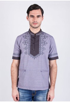Promo Menarik LGS - Slim Fit - Baju Koko - Lengan Pendek - Motif Bordir - Abu sebaiknya diambil