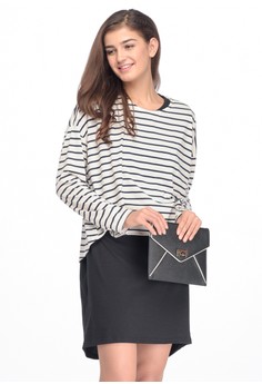 Penawaran Murah MOOIMOM 2 Piece Maternity \u0026 Nursing Dress In Striped With Long Sleeves Baju Ibu Hamil Menyusui - Black White sayang jika tidak diamankan