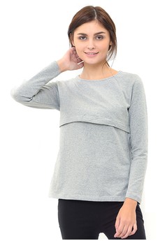 Penawaran MurahMOOIMOM Basic Long Sleeve Nursing Top Baju Hamil Menyusui - Grey sayang jika tidak diambil